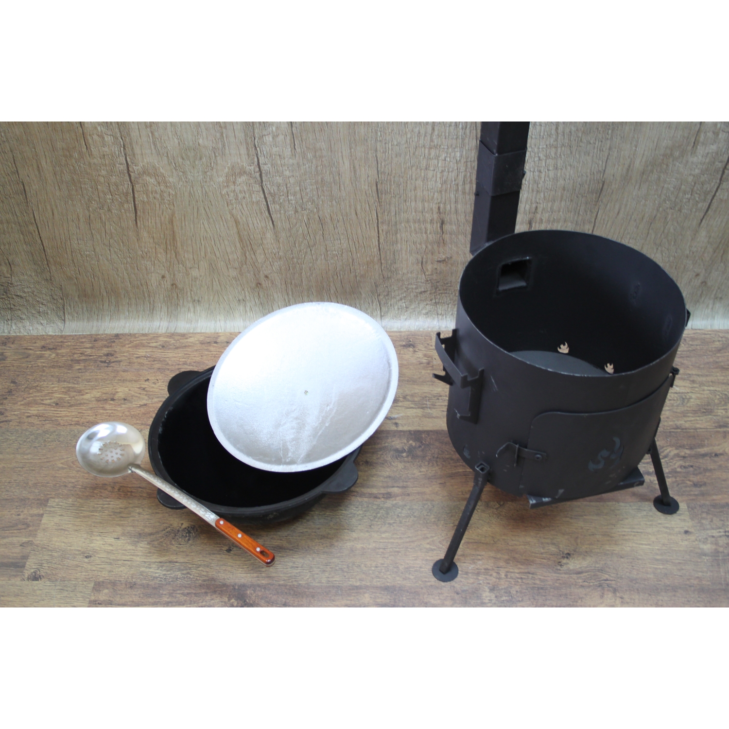 казан 16 л, печь 41 см с трубой, шумовка 46 см