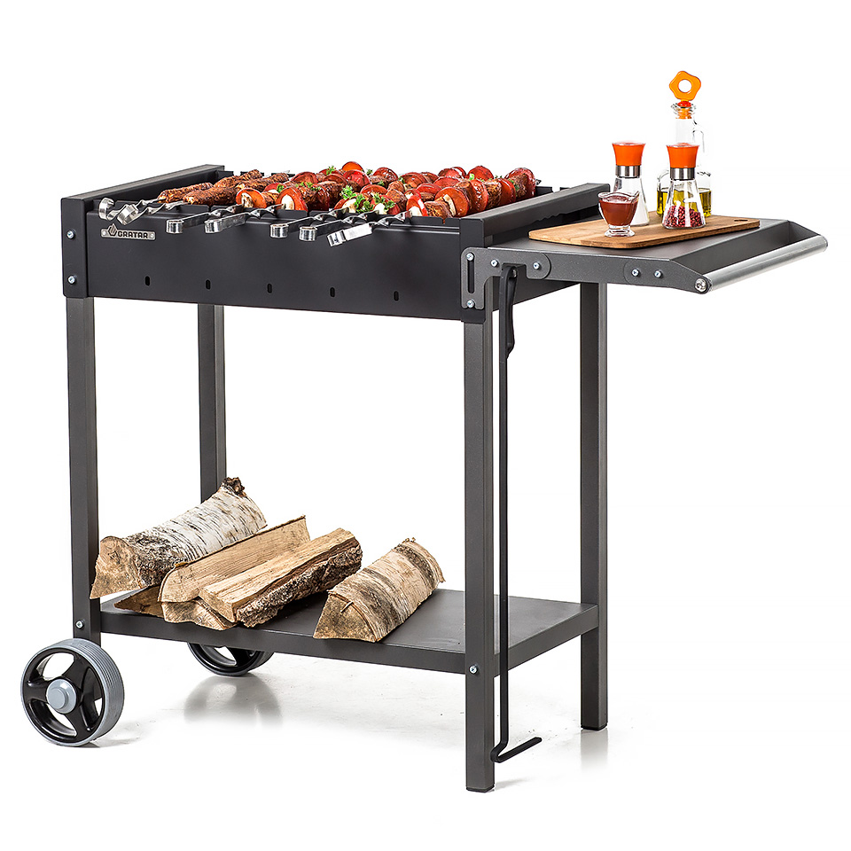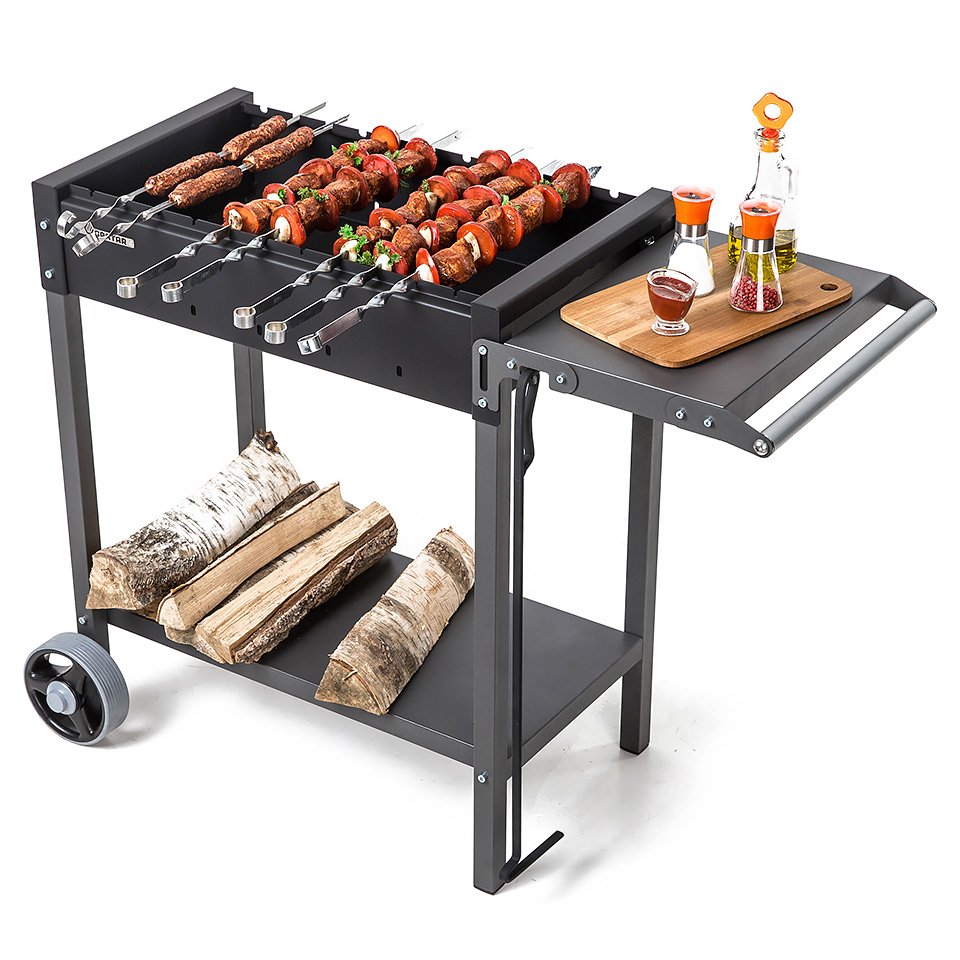 Надёжный гриль-мангал из толстой стали со складными полками.
