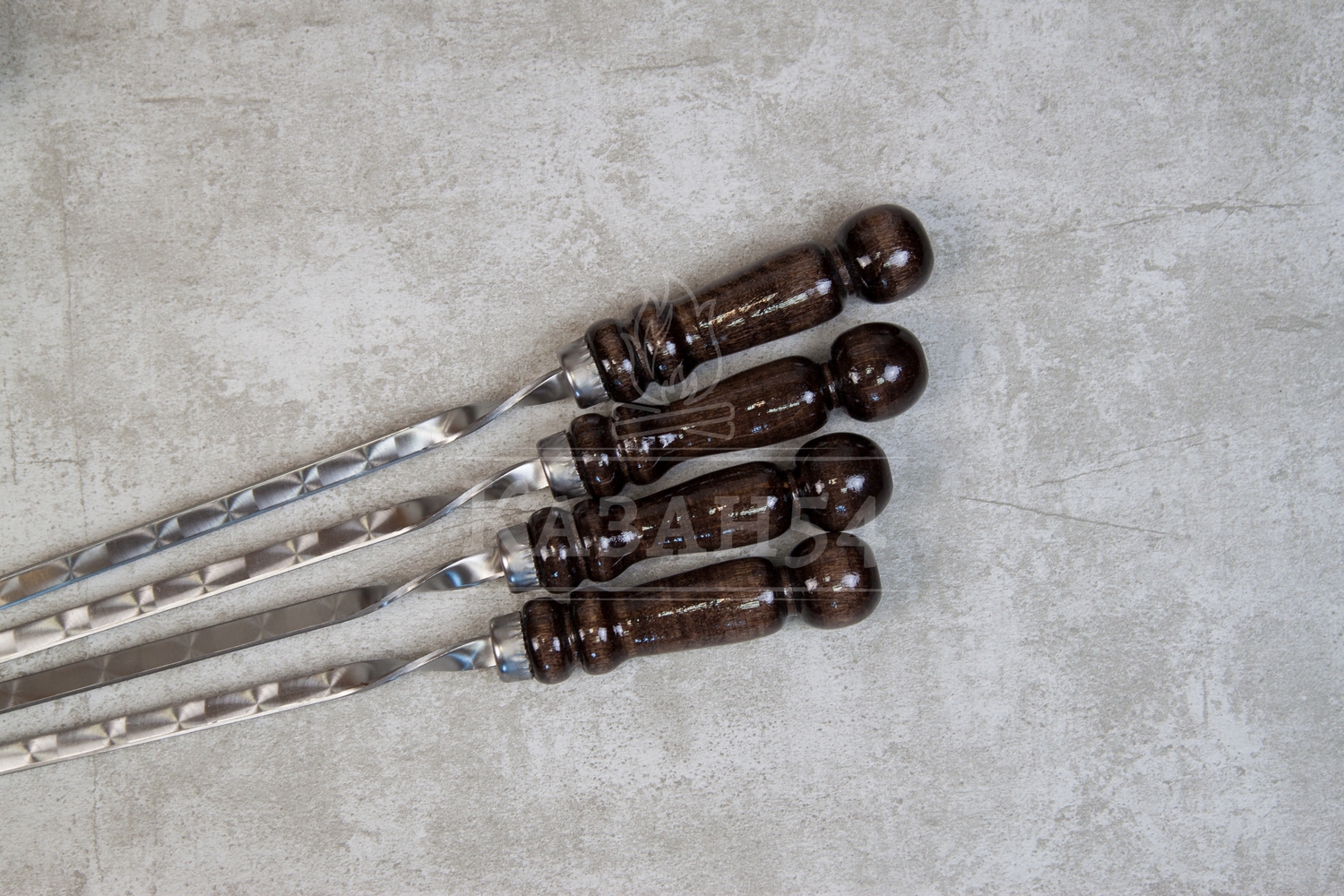 Шампура с деревянной ручкой из нержавеющей стали 350х12х3 мм. - 4 шт.