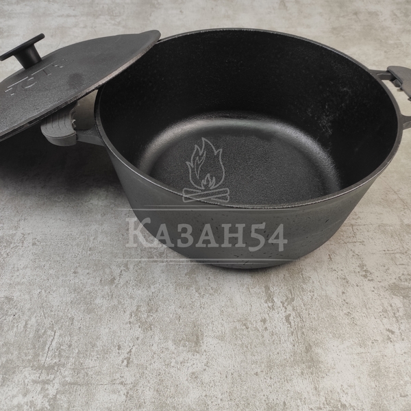 Кастрюля имеет чугунную крышку в комплекте, что позволяет сохранять тепло, а так же использовать ее для тушения продуктов.