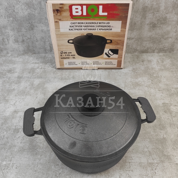 Кастрюля имеет чугунную крышку в комплекте, что позволяет сохранять тепло, а так же использовать ее для тушения продуктов.
