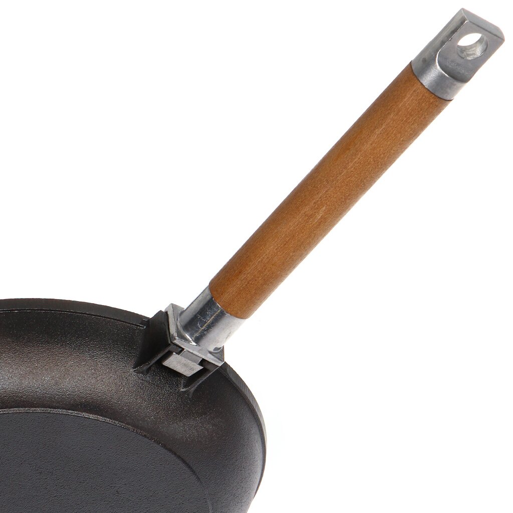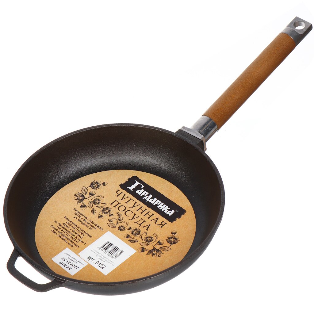 Сковорода Гардарика чугунная, глубокая, съемная ручка, 24см. Надежная система крепления деревянной ручки. При снятой ручки сковороду можно использовать в духовом шкафу или просто компактно ее хранить.