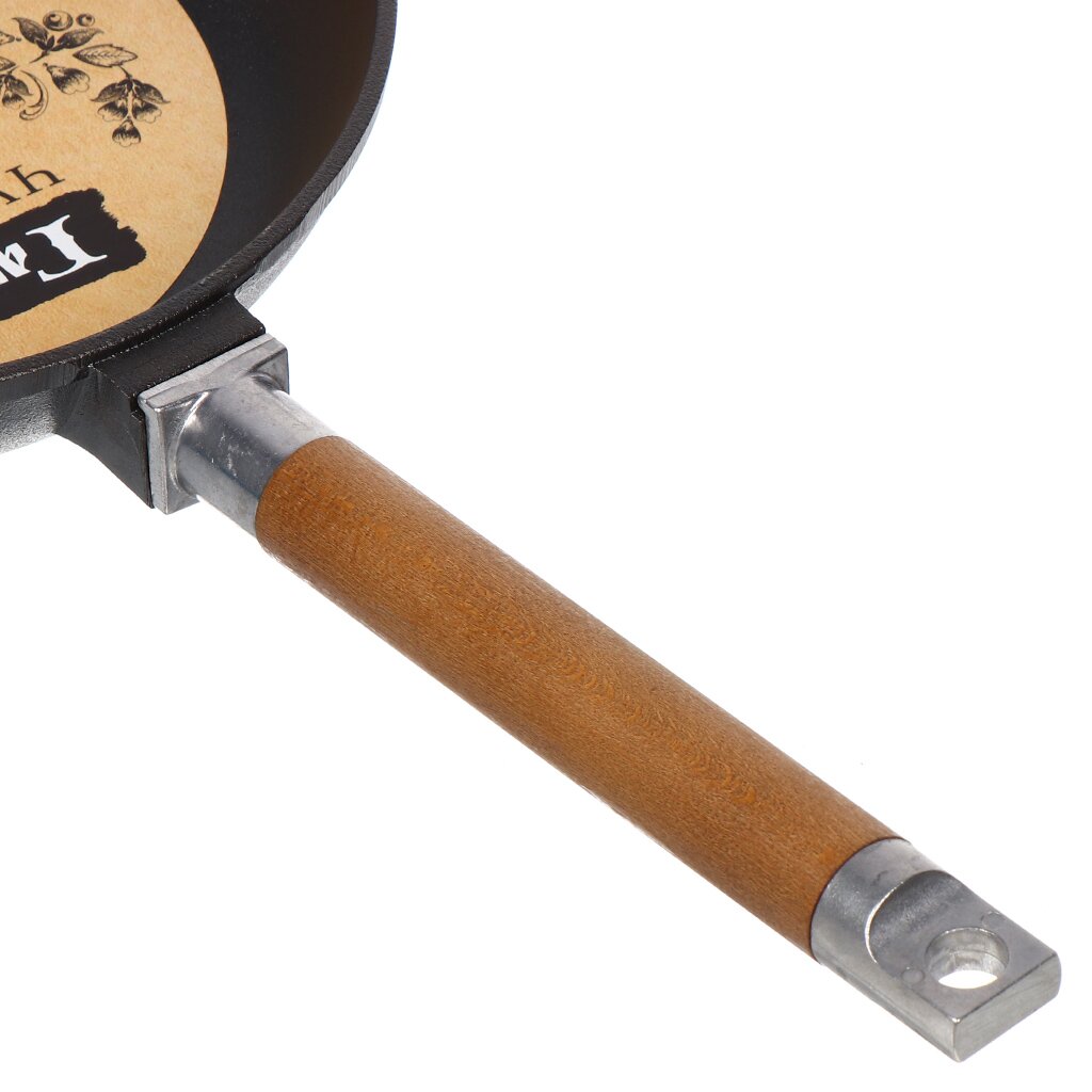 Сковородка имеет съемную ручку, выполненную из натурального дерева, которая позволяет мыть сковородку отдельно, что очень удобно.