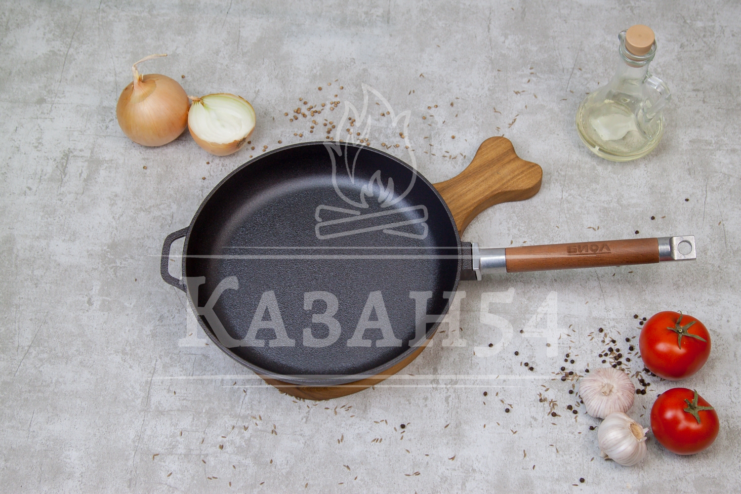 Сковорода подойдет для всех видов плит. Также ее можно использовать на открытом огне.