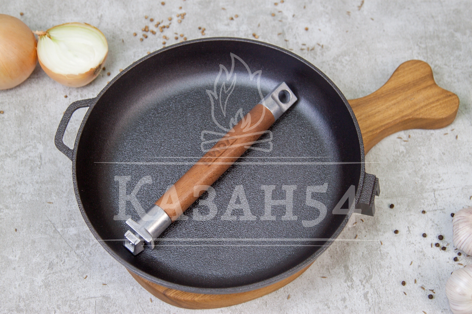 Сковорода Гардарика чугунная, глубокая, съемная ручка, 26см. Надежная система крепления деревянной ручки. При снятой ручки сковороду можно использовать в духовом шкафу или просто компактно ее хранить.