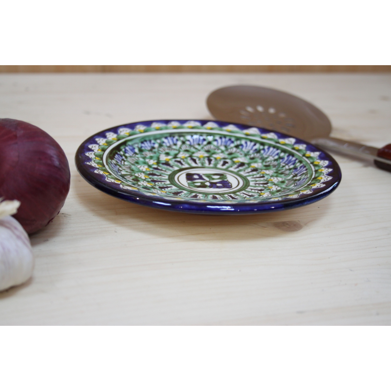 Тарелка синяя (мехроб) 17 см плоская